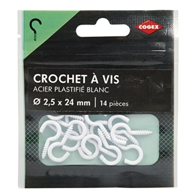 Cogex 85265 Hook, White Plastic, 2.5 x 24 mm Set of 14 Pieces