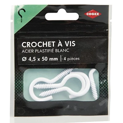 Cogex 85267 Plastic Hook, White, 4.5 x 50 mm, Set of 4)