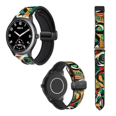 Cokitec 22 mm Silicone and Genuine Leather Watch Strap: African Pattern