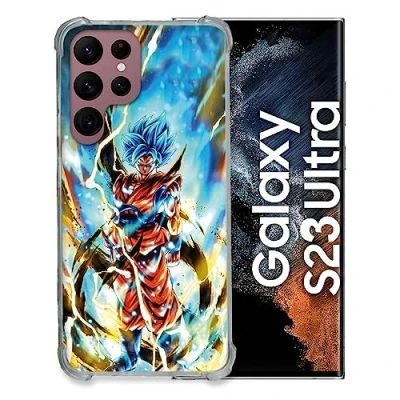 Cokitec Tempered Glass Case for Samsung Galaxy S23 Ultra Manga Dragon Ball Sangoku White