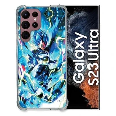 Cokitec Tempered Glass Case for Samsung Galaxy S23 Ultra Manga Dragon Ball Vegeta Blue