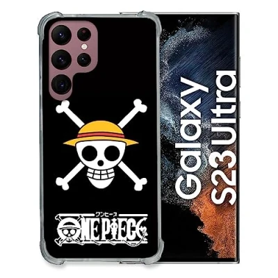 Cokitec Tempered Glass Case for Samsung Galaxy S23 Ultra Manga One Piece Skull Design