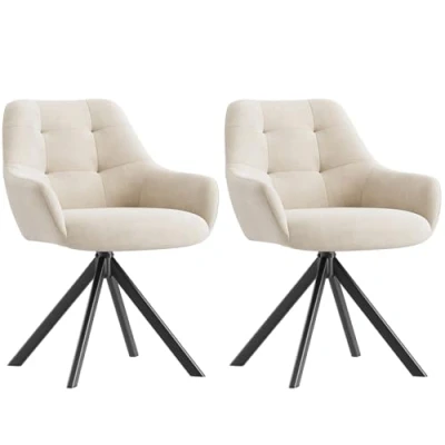【Plush Velvet & Sturdy Metal Base】 Indulge in luxury with our dining chairs, upholstered in premium velvet that feels soft to the touch. Paired with a robust and stylish metal base, these chairs offer a perfect blend of modern elegance and industrial strength, ensuring they remain a stunning centrepiece in your home for years to come. 【360° Swivel & Thick Comfort Cushion】 Enjoy effortless mobility with the smooth 360° swivel function, allowing you to easily turn and converse. The generously thick 8.5cm high-resilience foam cushion provides exceptional, all-day comfort and support, moulding to your body for a truly relaxing seating experience. 【Elegant Button-Tufted Design & Strong Support】 Featuring an elegant button-tufted backrest that adds a touch of sophisticated detail and enhances the chair's visual appeal. Engineered for durability, each chair boasts an impressive 113kg weight capacity, guaranteeing reliable stability and peace of mind for all users. 【Versatile for Multiple Spaces】 Versatile enough to enhance any space, this set of 4 chairs is ideal not only for your dining room and kitchen but also as elegant accents in living rooms, home offices, or even commercial settings like cafes and waiting areas, seamlessly blending with various interior decors. 【Easy Assembly & Quality Assurance】 Get your dining area ready in minutes! We've simplified the assembly process so you can set up your new chairs with ease and minimal effort. Backed by COLAMY's commitment to quality and customer satisfaction, your purchase is risk-free.