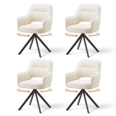 ✅【Smooth 360° Swivel Function】Equipped with a swivel base, this dining chair allows effortless 360-degree rotation without needing to move the chair itself. Ideal for use in dining areas, home offices, or lounges—wherever easy mobility and flexible seating are needed. ✅【Sturdy & Durable Construction】Crafted with a robust metal frame, this kitchen chair ensures reliable stability and supports up to 113 kg in weight. The metal base adopt a multi angle tilt design, combined with anti slip foot pads, which not only saves space but also improves stability and enhances overall aesthetics. ✅【Enhanced Comfort for Prolonged Use】The seat is equipped with thickened and widened high-density sponge pads, combined with ergonomic backrest and armrest designs, providing a long-lasting and comfortable sitting experience. The fabric is wear-resistant and skin friendly, pet friendly, and combines fashionable appearance with daily practical performance. ✅【Versatile and Multi-Purpose】These dining table chairs can easily blend with any type of table—making them suitable for use not only in the dining room but also as side chairs in the living room, office, or as additional seating in restaurants or event spaces. ✅【Effortless Assembly & Space-Saving Design】Comes with all tools and clear instructions for quick setup. Its compact design allows the dining chair to slide neatly under the table when not in use, saving valuable space in your kitchen or dining area.