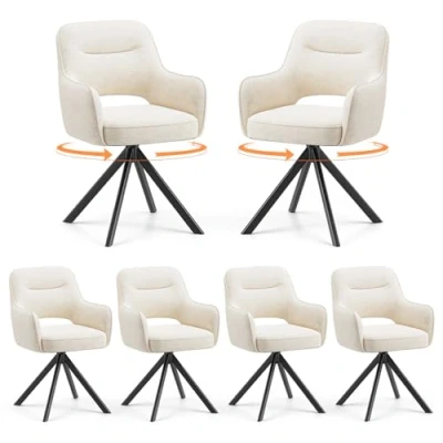 COLAMY 360Swivel Dining Chairs Set of 6, Fabric for Room with Armrests, Hollow Backrest and Thick Seat Cushion, Kitchen Chair Anti Slip Pads, armchairs living Room, Beige