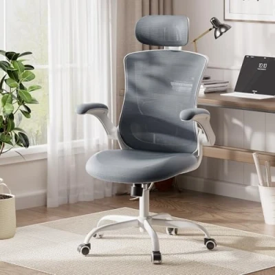👍【MULTI-FUNCTIONAL OFFICE CHAIR】Experience the next level of comfort with our high back ergonomic office chair, which includes an adjustable headrest, customizable lumbar support, flip-up armrests, and swivel rolling casters. The adjustable height and rocking back and forth make you can find the perfect ergonomic position in working or relaxing. Whether working, studying, or gaming, this ergonomic chair enhances your comfort and productivity. 👍【ERGONOMIC OFFICE CHAIR WITH ADJUSTABLE LUMBAR SUPPORT】Our ergonomic chair features a fully adjustable lumbar support system that provides targeted back relief. The curved backrest aligns your spine correctly, reducing lower back strain and allowing you to adjust the lumbar support height to your preference. This customization provides maximum comfort and support tailored to your individual needs. 👍【BREATHABLE MESH OFFICE CHAIR】Designed with a breathable mesh fabric, this mesh office chair promotes excellent airflow to keep you cool and comfortable throughout the day. The durable mesh has been rigorously tested to endure up to 120,000 cycles, offering long-lasting use. Additionally, the waterfall seat design helps alleviate pressure on your legs, enhancing overall comfort. 👍【FLEXIBLE SWIVEL ROLLING CHAIR】Featuring solid, smooth-rolling casters, this mesh office chair moves effortlessly over various floor surfaces, including carpet and hardwood. The wheels are designed to enhance mobility and reduce noise, allowing you to move around your workspace quietly and efficiently. 👍【SOLID CONSTRUCTION】Made for last! This office chair features a heavy-duty nylon base and smooth-rolling casters for excellent stability and mobility. BIFMA certification, more reliable and sturdy, maximum capacity up to 125 KG (275 LBs). Easy to assemble, the executive chair equipped with detailed instructions, anyone can complete the assembly in 10-20 minutes.