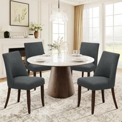 🔹 1. Elegant Parsons Dining Chairs for Any Space These upholstered dining chairs feature a timeless Parsons design with clean lines and a gently curved backrest, bringing understated elegance to your dining room, kitchen or living area. The neutral cream linen fabric easily complements modern, farmhouse and classic interiors. 🔹 2. Comfortable Curved Backrest Support Designed with a slightly curved backrest to follow the natural shape of your spine, these dining room chairs provide excellent support during long meals and gatherings. The ergonomic angle enhances comfort while maintaining a refined silhouette. 🔹 3. 13cm Thick Padded Seat Cushion Each kitchen chair is fitted with a generous 13cm thick high-resilience sponge cushion, offering superior comfort and lasting shape retention. The seat remains supportive and not easily deformed even with regular daily use. 🔹 4. Sturdy Solid Rubber Wood Frame Built with durable solid rubber wood legs and a reinforced wooden frame, these upholstered dining chairs offer stability and strength with a weight capacity of up to 125kg. Anti-slip foot pads help protect your floors while keeping the chair steady. 🔹 5. Versatile & Easy to Assemble Perfect as dining chairs, kitchen chairs, or even accent chairs in a bedroom or hallway. Delivered with clear instructions for quick assembly, these fabric dining chairs combine practicality, comfort and timeless style for everyday living.
