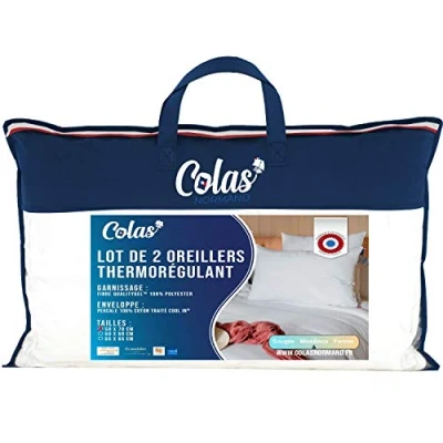 Soft Comfort: Perfect for sleeping on your back or on your stomach Its soft and breathable cotton percale envelope allows air to circulate better and long lasting resistance Made in France: Colas Normand is a Norman company and we are proud of it Our products are designed and manufactured in France Care instructions: We recommend that you wash your pillow at 30 degree Celsius and allow it to air dry Can be tumble dried at low temperature Refreshing: Cool'In treatment diffuses mineral crystals during your sleep to manage moisture absorption and refresh the textile in the presence of a damp heat source Package contents: 2 x Colas Normand Pillows, supplied with a storage bag from recycling more environmentally friendly Leave your pillow 24 hours after opening so that it regains its shape