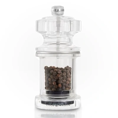 Cole & Mason 675 Pepper Mill, Adjustable Precision+ Carbon Steel Mechanism, Grinder for Seasoning/Cooking, Acrylic, 118mm, Lifetime Mechanism Guarantee, H233076