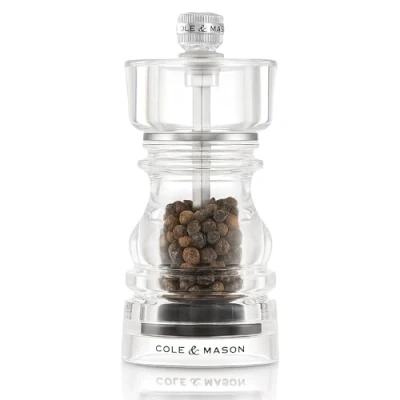 Cole & Mason London Acrylic Pepper Mill, Precision+ Carbon Mechanism, Grinder with Adjustable Grind, 130mm, Seasoning Lifetime Mechanism Guarantee