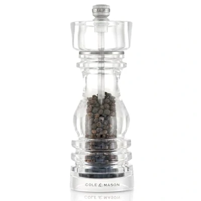 Cole & Mason London Acrylic Pepper Mill, Precision+ Carbon Mechanism, Grinder with Adjustable Grind, 180mm, Seasoning Lifetime Mechanism Guarantee