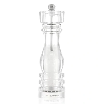 Cole & Mason London Acrylic Salt Mill, Non Corroding Ceramic Mechanism, Grinder with Adjustable Grind, 220mm, Seasoning Lifetime Mechanism Guarantee