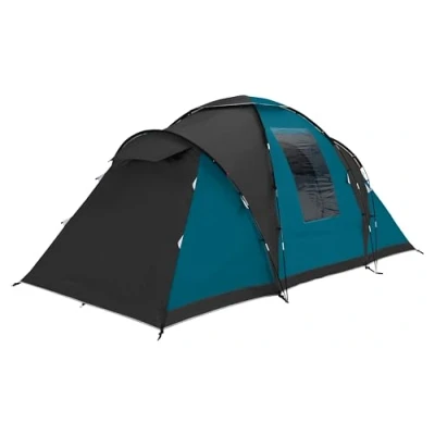XXL BEDROOMS: This 4 person dome tent is equipped with 2 opposite extra large bedrooms and a bright and spacious living area in the centre with large PVC windows and good ventilation LIGHTWEIGHT, STURDY AND EASY TO PITCH FAMILY SIZE TUNNEL TENT: 165 cm head height throughout the tent; highly flexible and lightweight fibreglass poles guarantee a good response to wind 100% WATERPROOF: 3000 mm water column in combination with taped seams and welded, sewn-in ground sheet makes this 4 man Vis-a-Vis family tent absolutely waterproof; UV 50+ protection FEATURES: Air flaps provide optimal air circulation to prevent condensation in the tent; the entrance can also be used to create a front porch for extra storage or shaded area; integrated cable slot Set up size: 460x230x205 cm (LxWxH); 2 bedrooms 5,9m² + living area 3,9m² = 9,8 m² total; pack size 62x23x23 cm, weight 10,3 kg, carry bag, guylines and sufficient tent pegs included