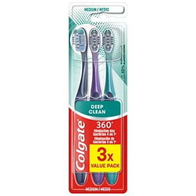 COLGATE 360 Deep Clean Medium Toothbrush eliminates Bacteria interdental Strands Between Teeth