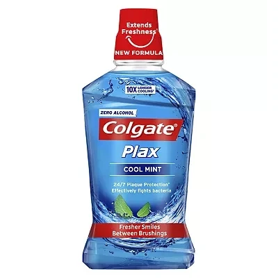 SUPER FRESH: Experience instant, long-lasting freshness with Colgate Plax Cool Mint Mouthwash! PLAQUE PROTECTION: Colgate Plax provides 24/7** plaque protection, so you know you’re doing a great job looking after your teeth each time you rinse NO BURN SENSATION: Because this fresh breath mouthwash is designed for a no burn sensation with 0% alcohol*, you’ll love the swishing that gives you 100% breathtaking freshness. CLINICALLY TESTED: The fresh breath mouthwash has been clinically tested by dentists. Contains 0% Alcohol Vegan
