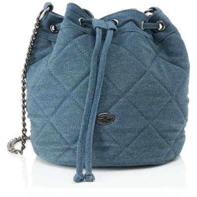 Casual pouch bag for women Decorative diamond quilting Drawstring Titanium-coloured link chain as carrying strap Titanium-coloured logo appliqué