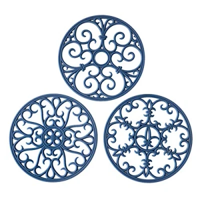 Colinda Silicone Trivet Mat Set of 3 Navy Blue Heat Resistant up to 482F Non Slip & Food Safe Hot Pot Holder Table