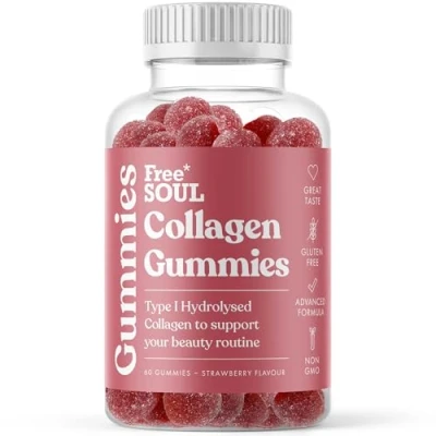 𝗕𝗜𝗢𝗔𝗖𝗧𝗜𝗩𝗘 𝗤𝗨𝗔𝗟𝗜𝗧𝗬 𝗖𝗢𝗡𝗧𝗔𝗜𝗡𝗜𝗡𝗚 𝗘𝗦𝗦𝗘𝗡𝗧𝗜𝗔𝗟 𝗔𝗠𝗜𝗡𝗢 𝗔𝗖𝗜𝗗𝗦 – Our collagen gummies contain high levels of the 8 essential amino acids for the highest level of bioavailability & absorption. Unlike other collagen supplements, Free Soul's Collagen Gummies are effectively absorbed, for the ultimate visible benefits. 𝗜𝗡𝗖𝗥𝗘𝗗𝗜𝗕𝗟𝗘 𝗧𝗔𝗦𝗧𝗘 – Unlike collagen powders and collagen tablets or capsules, Free Soul's Collagen gummies are delicious! Free from artificial flavours, we utilise natural strawberry flavour so you can actually enjoy taking this collagen supplement & stay consistent for the best results. Free Soul collagen gummies are gluten-free, for bloat-free digestion. 𝗧𝗬𝗣𝗘 𝟭 𝗠𝗔𝗥𝗜𝗡𝗘 𝗖𝗢𝗟𝗟𝗔𝗚𝗘𝗡 – Collagen is one of the fundamental building blocks of hair, skin, and nails, and our natural collagen levels deplete over time, so supplementing with a highly-absorbable supplement is essential. Free Soul's collagen supplement utilises Superior Type I Collagen Peptides for the ultimate absorption rates. 𝗠𝗢𝗥𝗘 𝗖𝗢𝗡𝗩𝗘𝗡𝗜𝗘𝗡𝗧 𝗧𝗛𝗔𝗡 𝗖𝗢𝗟𝗟𝗔𝗚𝗘𝗡 𝗣𝗢𝗪𝗗𝗘𝗥𝗦 𝗢𝗥 𝗖𝗔𝗣𝗦𝗨𝗟𝗘𝗦 – The key to achieving the best results is consistency. The challenge with being consistent with collagen powder, is that you need to mix up a drink to consume it, which is also the case with capsules. Our gummies can be had at any time of day, and do not require any preparation, allowing you to be more consistent to achieve the best results. 𝗡𝗨𝗧𝗥𝗜𝗧𝗜𝗢𝗡𝗜𝗦𝗧 𝗙𝗢𝗥𝗠𝗨𝗟𝗔𝗧𝗘𝗗 – All Free Soul products have been formulated by one of the UK's leading nutritionists and produced according to the highest manufacturing standards in the world. We source the finest and most beneficial ingredients to allow us to produce advanced nutritional supplements to benefit our customers across the globe. 𝗘𝗮𝗰𝗵 𝗯𝗼𝘁𝘁𝗹𝗲 𝗰𝗼𝗻𝘁𝗮𝗶𝗻𝘀 𝟲𝟬 𝗴𝘂𝗺𝗺𝗶𝗲𝘀 | 𝗢𝗻𝗲 𝗠𝗼𝗻𝘁𝗵 𝗦𝘂𝗽𝗽𝗹𝘆 (𝟯𝟬 𝗦𝗲𝗿𝘃𝗶𝗻𝗴𝘀)