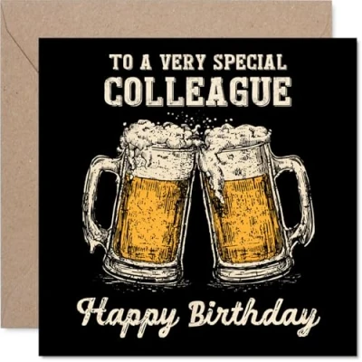 Colleague Birthday Card Bday Beer Happy for from Friend Coworker, 145mm Cheers Greeting Cards