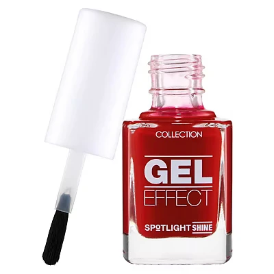 Highly Pigmented: Get an amazing full coverage giving you that glamorous vivid colour, the perfect stylish shade to match any look, wear it all year round Glossy Finish: Feel confident with a professional salon finish every time. This high-quality gel effect polish leaves your nails with a gel-like glistening shine Easy to Apply: No UV light or curing required. The simple wide fanned brush applicator provides an effortless application with a professional-looking finish Long Lasting: Colour that lasts. This long-wearing nail varnish is wear-resistant meaning less pesky chips and a colour that will not fade. Pair with our Spotlight Shine Gel Effect Top Coat for an extra durable, glossy manicure Vegan: At Collection Cosmetics, we are proud to offer a wide range of products free from animal testing and which do not contain any animal-derived ingredients