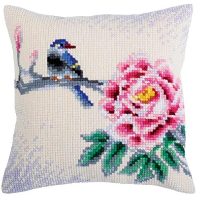 Collection d'Art Cross Stitch Kit: Cushion: Flower and Bird, Cotton Acrylic, Multi, 40 x 40cm