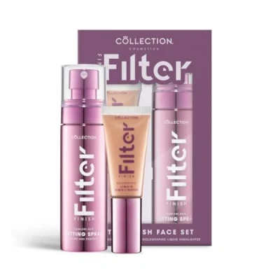 Glowy Finish: Achieve the ultimate glowy makeup look with this filter finish makeup set, formulated to leave your skin radiant with a smooth finish Liquid Highlighter: Get that dewy, luminous finish with our lightweight liquid highlighter, perfect for a natural glow or full glam look Setting Spray: Keep your look fresh for up to 16 hours with our long-lasting setting spray – no transfer or smudging Perfect gift: Give the gift of glow with this must-have duo: a radiant liquid highlighter and long-lasting setting spray – the perfect pair for flawless, luminous skin Vegan: At Collection Cosmetics, we are proud to offer a wide range of products free from animal testing and which do not contain any animal-derived ingredients