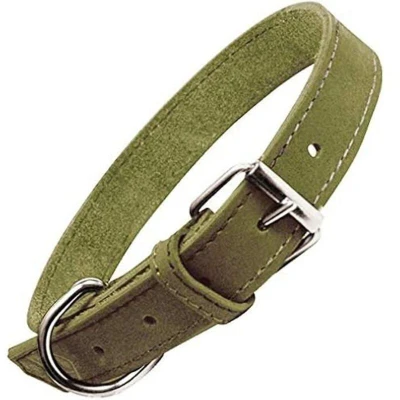 GLORIA nubuck leather collar for dogs, adjustable for optimal comfort. With its D-ring, it allows for easy attachment of a tag and leash. Its green color adds a touch of elegance to your companion.