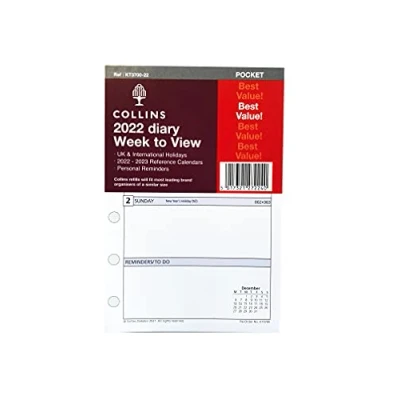 2022 Week to View Refill UK and International Holidays Personal Reminders Page size 120mm x 80mm