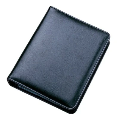 Luxury padded faux leather case Six-ringbinder mechanism Refillable 60 pvc pockets holding up to 120 cards Multi-coloured a-z tabs Document pocket