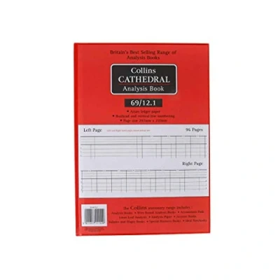 Collins Debden Ltd 060440 69 Series Cathedral A4 Analysis Book, 12 Cash Columns, 96 Pages, Red