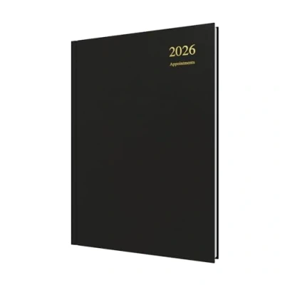 Collins Essential 2026 12 Month Calendar Year Planner, Day To Page with 1/2 Hourly Appointments Diary, A4 Hard Cover Black (ESSA41A.99 26)