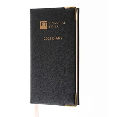 Luxury padded leathergrain covers Protective gilt corners & gilt page edging Landscape 2023 week to view layout Premium paper in the iconic pink of the Finanacial Times newspaper UK rail & London underground map