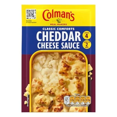 Quickly create a Classic Comfort food that will satisfy the whole family using Colman's Meal Maker Cheddar Cheese Sauce, which delivers a full-on flavour experience A quick and easy to prepare cheese sauce mix with a hint of mustard for a delicious, full-of-flavour accompaniment to your meals Enjoy our Meal Maker Cheddar Cheese Sauce in an easy-to-use, recyclable paper pack This Cheddar Cheese Sauce mix contains no artificial colours or preservatives Turn every meal into a homely feast with Colman's Meal Maker Cheddar Cheese Sauce! This Colman's sauce mix provides 4 servings so you always have a delicious accompaniment to your meal at hand