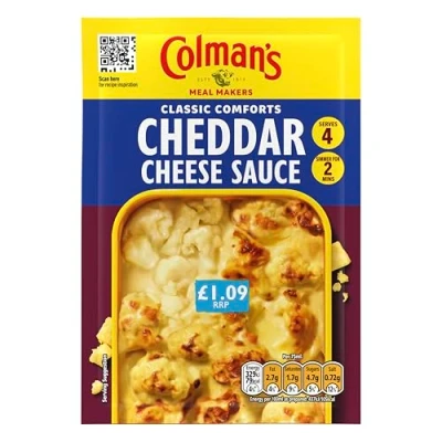 Quickly create a Classic Comfort food that will satisfy the whole family using Colman's Meal Maker Cheddar Cheese Sauce, which delivers a full-on flavour experience A quick and easy to prepare cheese sauce mix with a hint of mustard for a delicious, full-of-flavour accompaniment to your meals Enjoy our Meal Maker Cheddar Cheese Sauce in an easy-to-use, recyclable paper pack This Cheddar Cheese Sauce mix contains no artificial colours or preservatives Turn every family meal into a homely feast with Colman's Meal Maker Cheddar Cheese Sauce! This Colman's sauce mix provides 4 servings so you always have a delicious accompaniment to your meal at hand