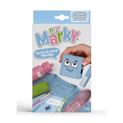User-friendly tool for adding imprints to clothing and school supplies Easy to personalise with text and icons Works on light-colored absorbent surfaces Comes with tweezers for precise character placement in the stamp's grooves Marky set includes textile tape for dark surfaces