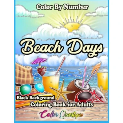 Color By Number Beach Days Coloring Book For Adults BLACK BACKGROUND: Numbered Designs Relaxation and Anxiety Relief (Color Adults)