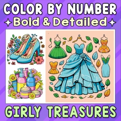 Color By Number Bold & Detailed Girly Treasures: Adorable Things for Adults and Teens to Relax, Unwind, Enjoy Sweet Style