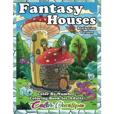 Color By Number Fantasy Houses Coloring Book For Adults Black Line Version: Quirky Mushroom Homes, Tiny Houses, Treehouses, Underwater Castles, ... and Much More (Color Adults)