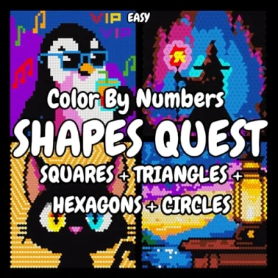 Color by Number for Adults: Shapes Quest Easy Squares, Triangles, Hexagons, Circles: Mystery Mosaic Activity Book to Relax Adults (Black Background)