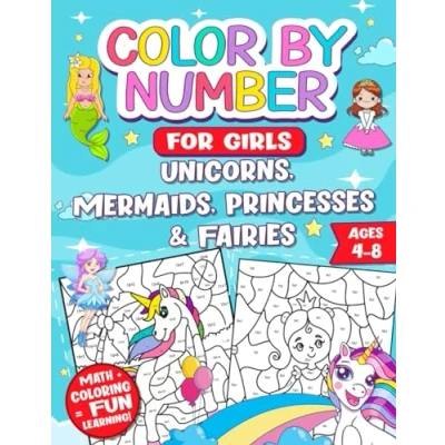 Color By Number For Girls: Unicorns, Princesses, Mermaids & Fairies Coloring Book Math Learning Ages 4 and Up