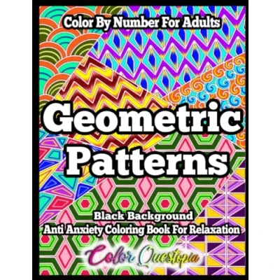 Color By Number Geometric Patterns Anti Anxiety Coloring Book For Adults Relaxation BLACK BACKGROUND: Numbered Designs and Shapes