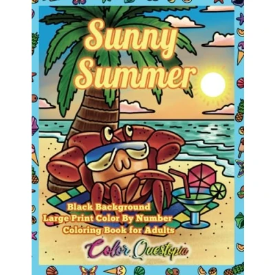 Color By Number Sunny Summer Coloring Book For Adults BLACK BACKGROUND: Large Print Numbered Designs Relaxation and Anxiety Relief (Color Adults)