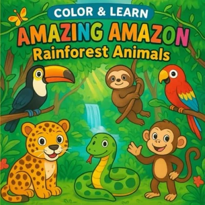 Color & Learn Amazing Amazon Rainforest Animals: Fun Coloring Book for Kids with Wild Jungle Creatures, Educational Facts Adventure Scenes