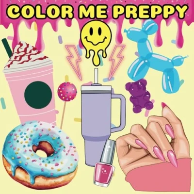 Color Me Preppy: Coloring Book for Adults and Kids, Bold Easy, Simple Big Designs Relaxation Featuring Cosmetic Items, Makeup, Skincare Products (Bold & Easy Coloring)