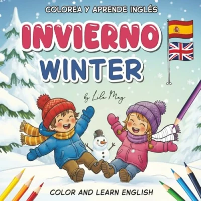 Colorea y aprende inglés: Palabras de invierno para niños Libro colorear bilingüe español inglés