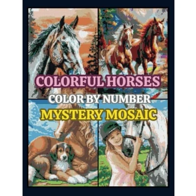 Colorful Horses Color by Number Mystery Mosaics: Pixel Art Book for Adults and Kids Fun Stress Relief Relaxation Activity (Mystery Mosaics Number)