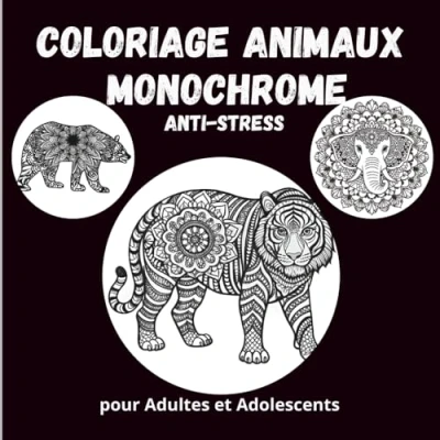 Coloriage Animaux Monochrome Anti Stress: 50 Mandalas et Illustrations Relaxantes en Noir Blanc pour Adultes Adolescents Lions, Hiboux, ... Stress Adolescents)