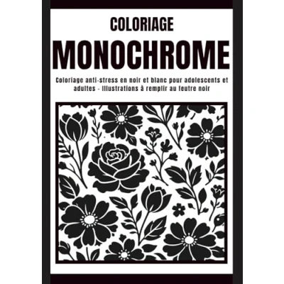 Coloriage MONOCHROME: anti stress en noir et blanc pour adolescents adultes Illustrations à remplir au feutre