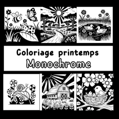 coloriage printemps & monochrome : livre de relaxant et anti stressen noir blanc dessin