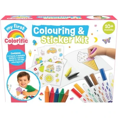 Colorific My First Colouring & Sticker Kit Jumbo Size Washable Markers, Crayons, Stickers Sheets, Arts Crafts for Kids Ages 10+ Months